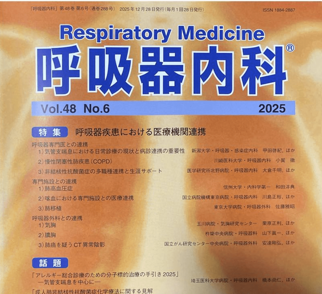 治療期間中の患者の負担は大きく、多職種チーム(MDT)による包括的ケアが極めて有用です。医師のほか、薬剤師、看護師に加え、理学療法士による気道クリアランス指導や、管理栄養士による栄養状態の改善は特に重要です。また、難治例や高齢患者に対しては、積極的治療から症状緩和へと移行する緩和的アプローチも、チーム全体で検討が必要です。肺NTM症は長期にわたり患者を苦しめる可能性が高いため、医療連携の重要性は今後ますます高まると考えられます。